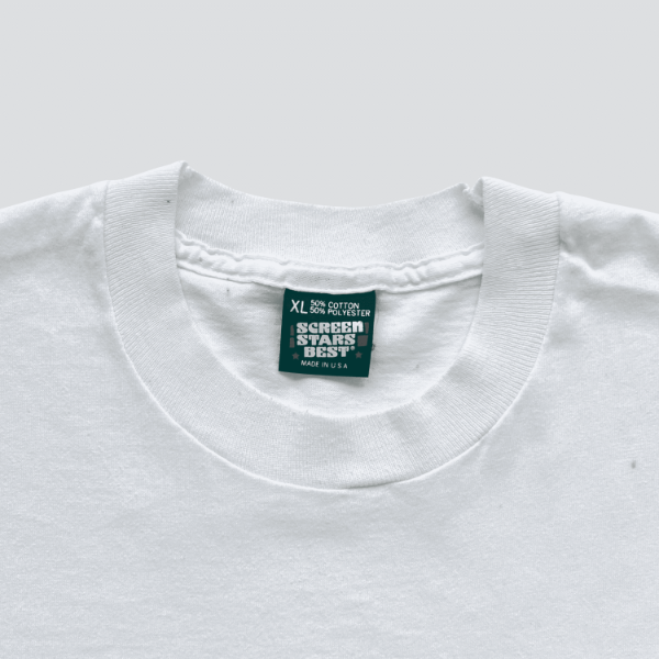 Remera original de época. Estampa en el frente. Single stitch. Made in USA. Se recomienda verificar las medidas, ya que los talles pueden variar según la época de la prenda.