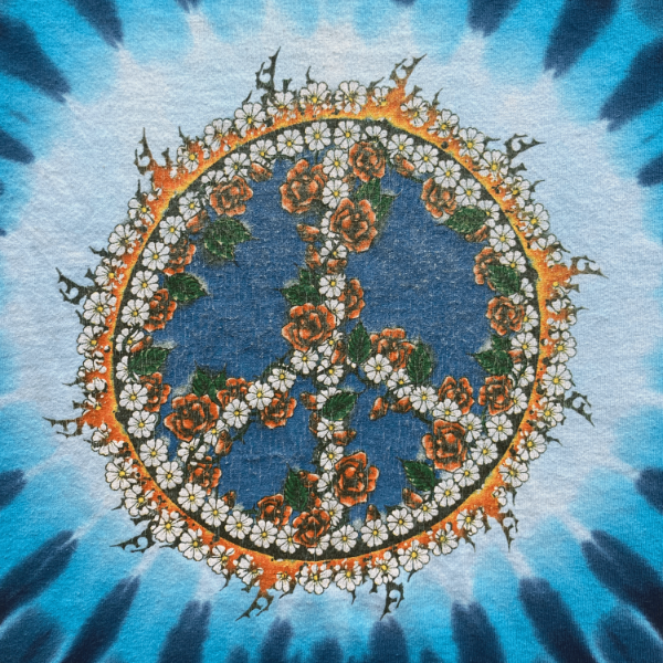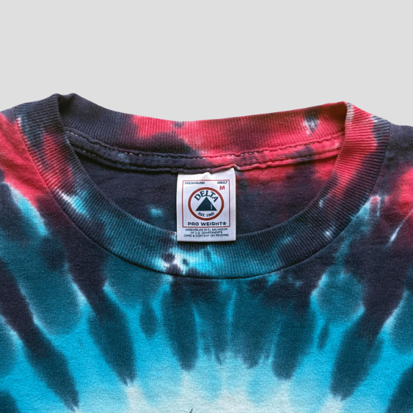 Remera de época. Tie Dye, estampa en el frente. Se recomienda verificar las medidas, ya que los talles pueden variar según la época de la prenda.